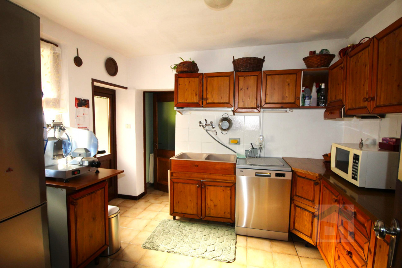 Esternamente troviamo la corte accessibile anche con l'auto, dove sono situati diversi accessori come legnaia, cantina, ripostigli ed una seconda abitazione indipendente da ultimare, attualmente accatastata come stalla. Questo secondo immobile si sviluppa su due livelli: al piano terra troviamo soggiorno, cucina abitabile e bagno finestrato con doccia mentre al primo piano, collegato mediante scala interna in legno, abbiamo due camere da letto matrimoniali ed uno studio che affaccia su un balcone privato.