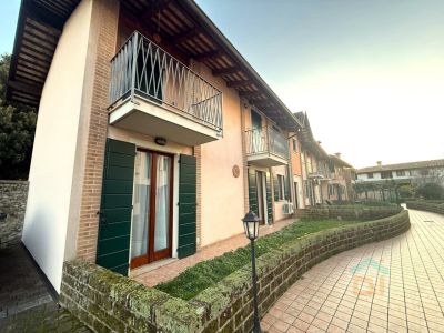 L'immobile è situato al piano terra di un complesso residenziale costruito negli anni 2000 ed è composto da cucina/soggiorno open space, camera da letto matrimoniale ed un bagno finestrato con vasca. Tramite due porte finestre situate una in camera da letto ed una in cucina, si accede al cortiletto di proprietà ad uso esclusivo. Inoltre, nella corte privata munita di cancello, è presente un posto auto scoperto assegnato.