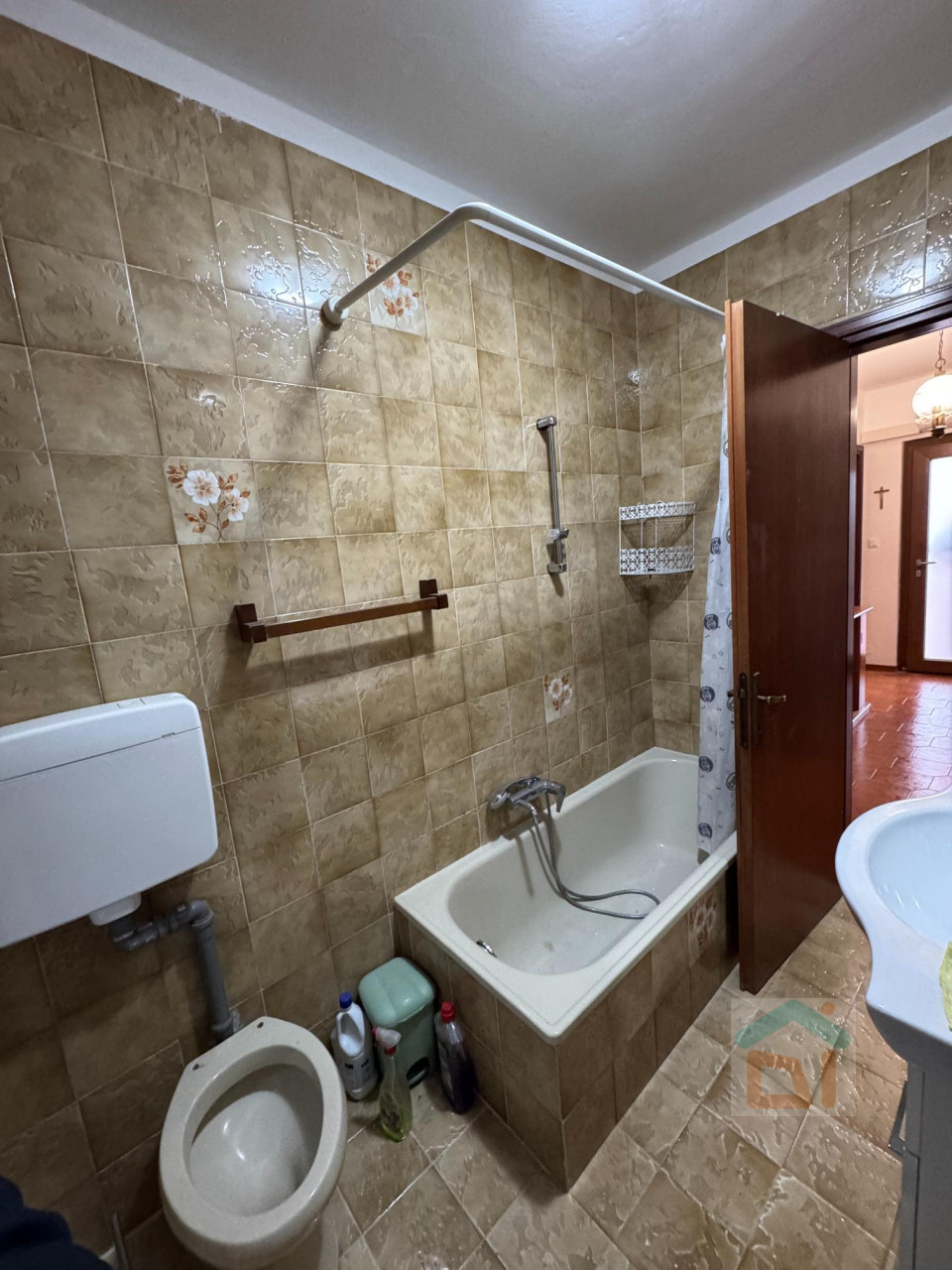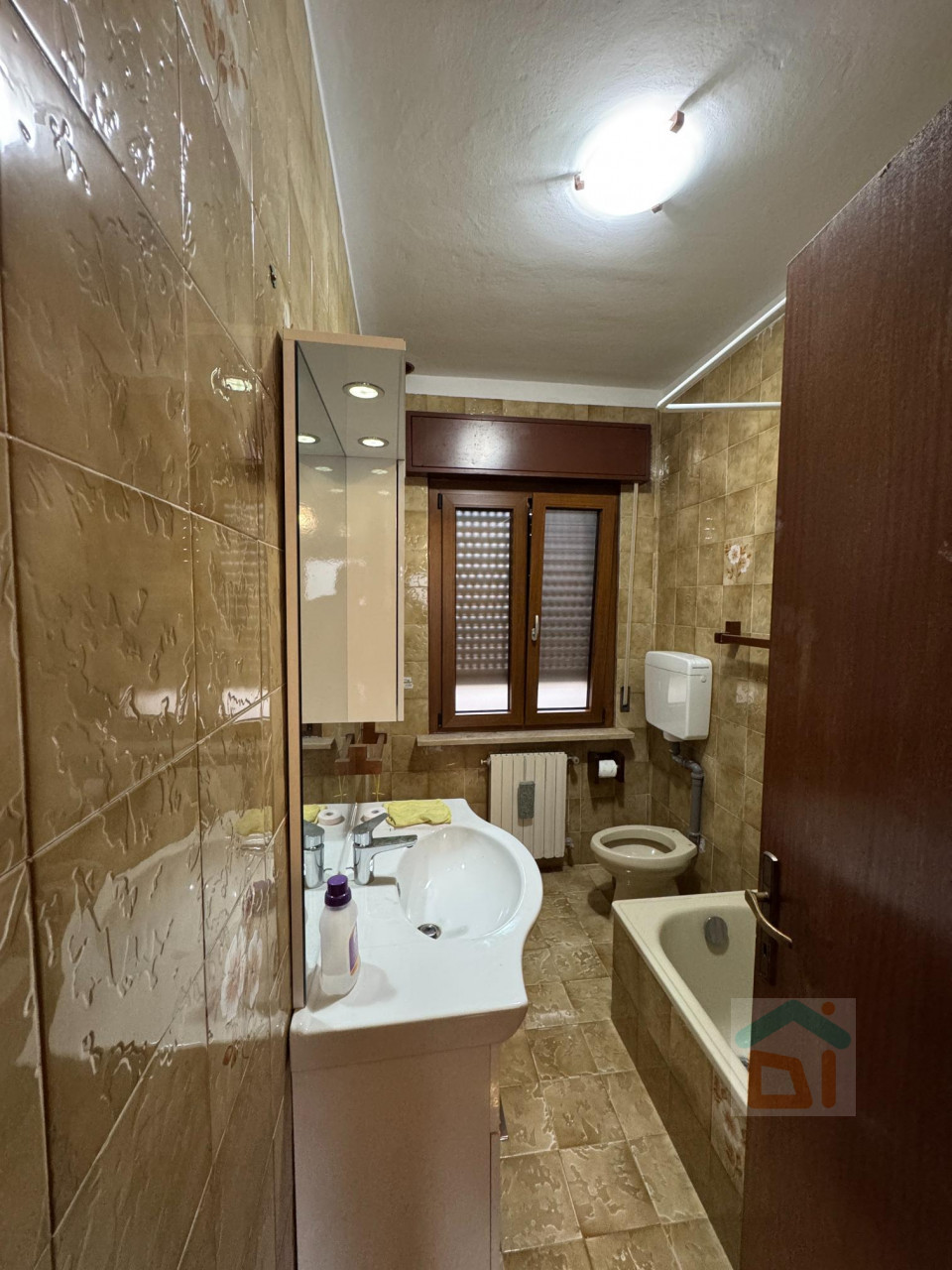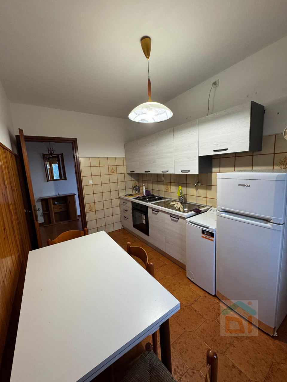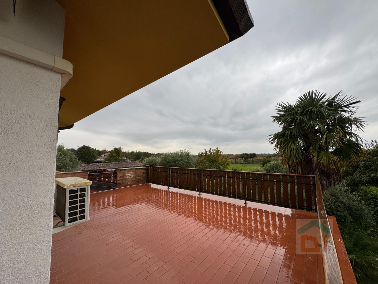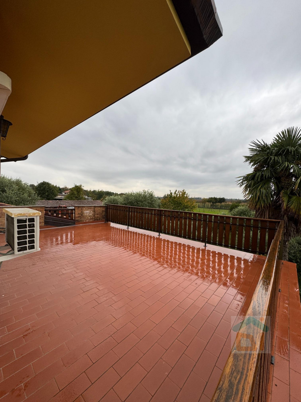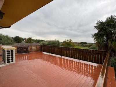 L'appartamento è situato al primo piano di una bifamiliare e vi si accede tramite scala esterna. E' composto da ampio terrazzo, ingresso, soggiorno, cucina abitabile, due camere da letto di cui una matrimoniale, bagno finestrato con vasca e ripostiglio. Completa la proprietà un posto auto scoperto accessibile attraverso passo carraio dalla strada principale. E' presente un cancello automatizzato.