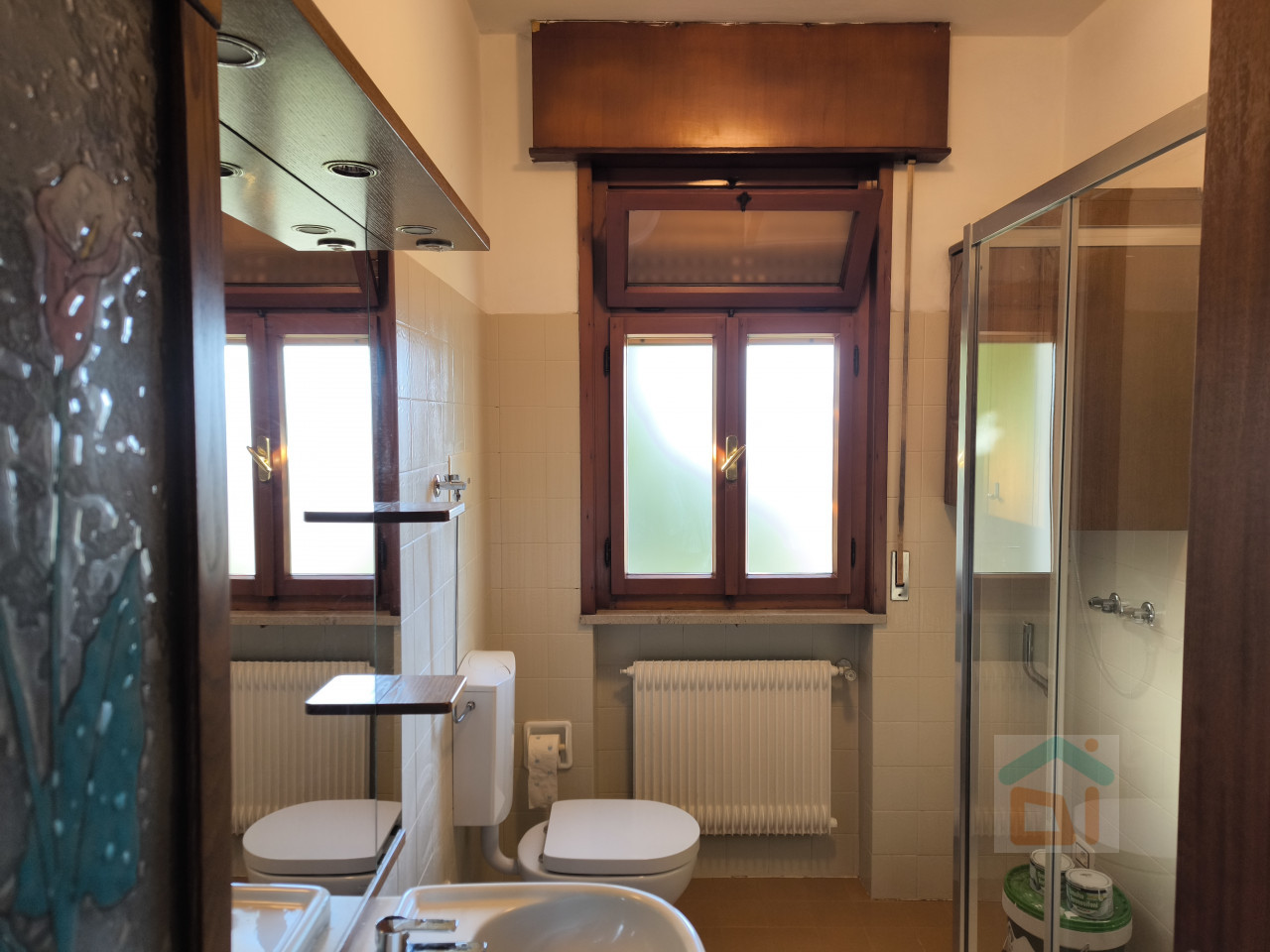 Gli infissi sono in legno con doppio vetro e dotati di tapparelle avvolgibili. I pavimenti sono in alcune stanze in piastrella quadrata a posa orizzontale mentre nelle camere troviamo palchetti in legno. Il riscaldamento è autonomo con termosifoni in tutte le stanze. La caldaia è stata sostituita due anni fa, il condizionatore è stato installato recentemente. Il bagno è stato interamente rifatto. E' presente poi poi l'impianto di ventilazione meccanica controllata.