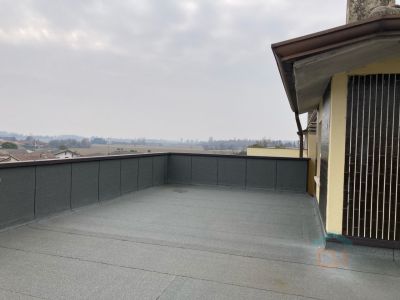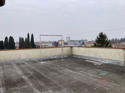 L'appartamento al quarto piano è così disposto: ingresso in disimpegno che porta alla zona giorno composta da salotto e sala da pranzo in open space. Da qui si accede a una grande terrazza ad angolo, collegata a lungo balcone che dà sulla facciata dell'edificio. Dall'ingresso sulla destra si accede alla cucina, che pure apre su un balcone. Il bagno è finestrato e dotato di sanitari nuovi.