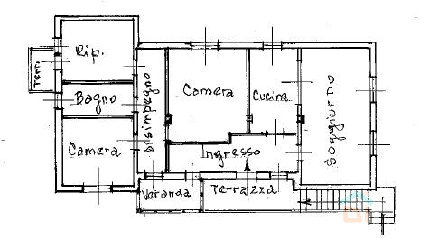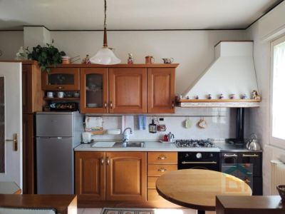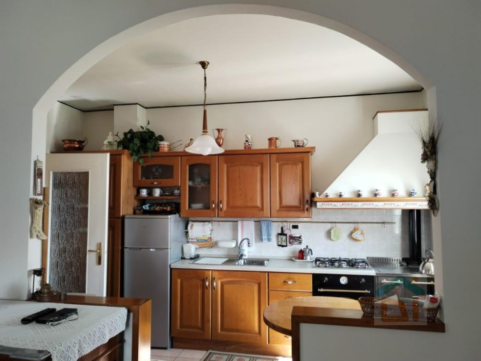 L'appartamento è ubicato in una abitazione suddivisa in sole due unità. Sito al primo piano, l'appartamento è raggiungibile con comode scale che terminano in un'ampia terrazza. Dal portone in legno si entra in un comodo ingresso che porta all'ampia e luminosa zona giorno: la cucina e il soggiorno che sono vicini e a vista. Nel disimpegno della zona notte troviamo una veranda, due camere matrimoniali, una camera singola con terrazzo e un comodo bagno con con vasca, finestrato.