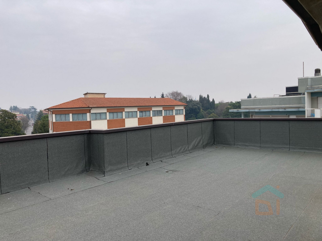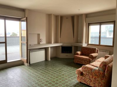 L'appartamento al quarto piano è così disposto: ingresso in disimpegno che porta alla zona giorno composta da salotto e sala da pranzo in open space. Da qui si accede a una grande terrazza ad angolo, collegata a lungo balcone che dà sulla facciata dell'edificio. Dall'ingresso sulla destra si accede alla cucina, che pure apre su un balcone. Il bagno è finestrato e dotato di sanitari nuovi.
