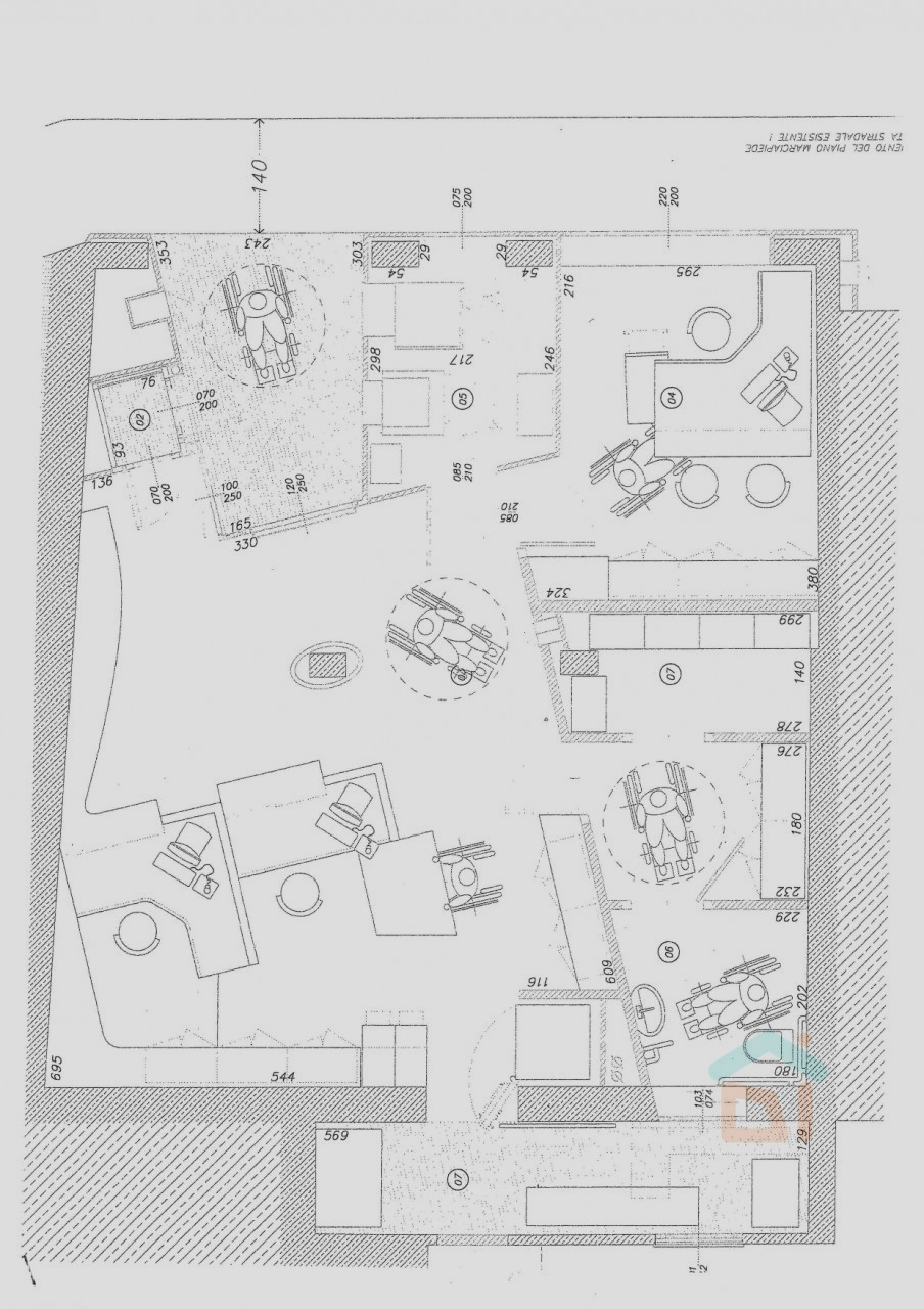 L'immobile è situato al piano terra di una palazzina disposta su due livelli. E' composto da un'unica ampia stanza suddivisa in vari spazi: ingressi di cui uno con controllo di sicurezza, zona adibita a prelievi Bancomat, tre zone ufficio, zona caldaia, zona impianti ed un wc.