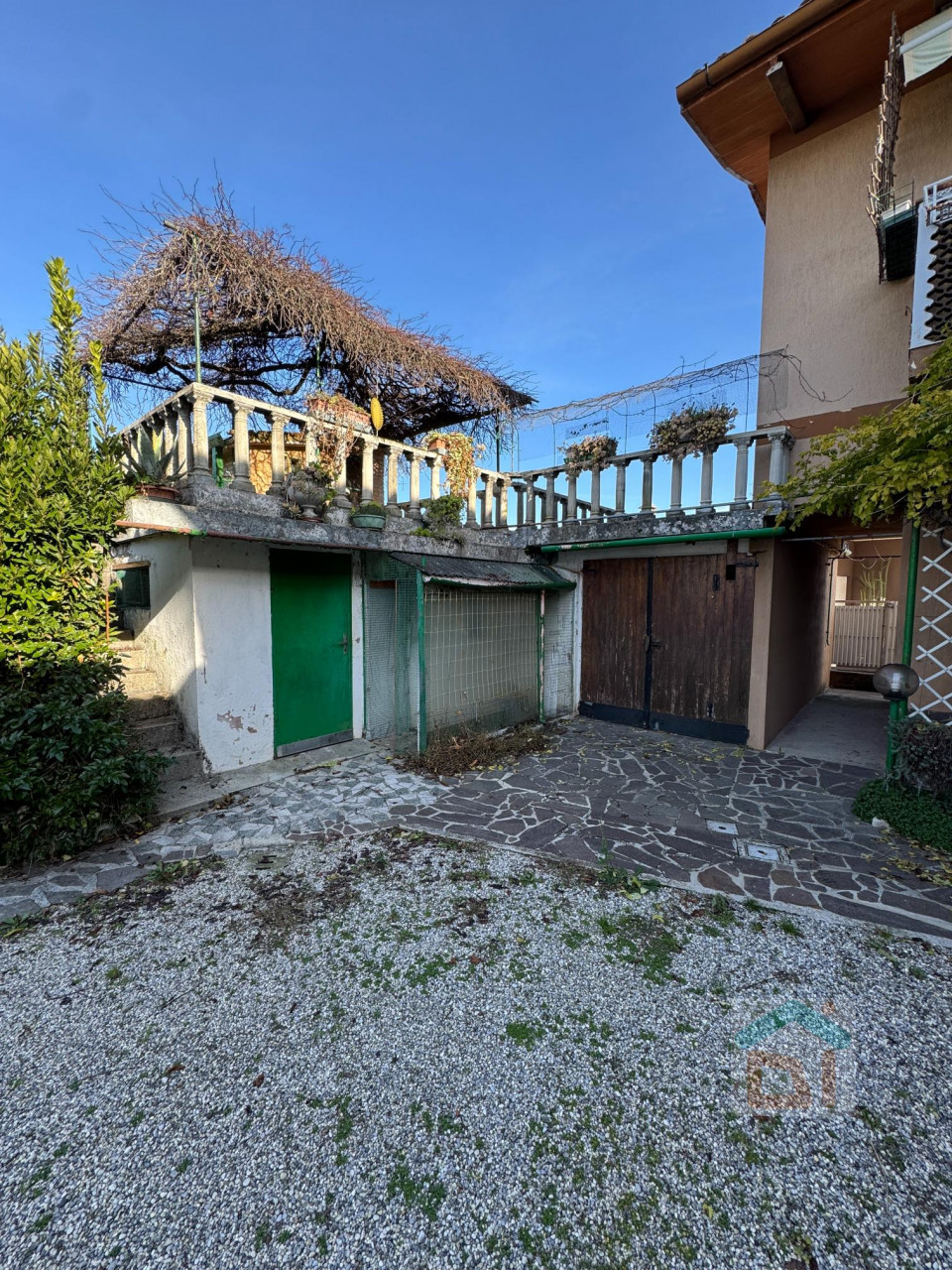 L'immobile è disposto su due livelli. E' composto al piano terra da ingresso, cucina abitabile, ampio soggiorno, bagno finestrato con doccia e zona caldaia nel sottoscala; al primo piano da tre camere da letto di cui due matrimoniali ed una singola, wc e terrazzo accessibile da una camera da letto e dalle scale. Esternamente completano la proprietà un garage, un ripostiglio con sopra un terrazzo ed un pollaio, depositi adibibili a vari usi, un giardino parzialmente recintato ed una corte comune.