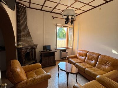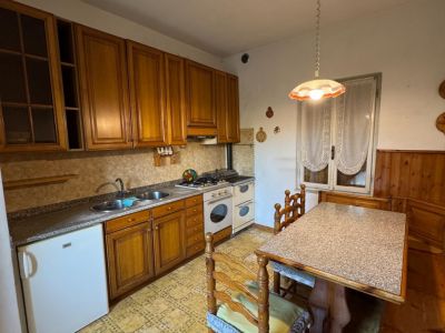 Gli infissi sono in legno con vetro singolo e dotati di scuretti sempre in legno. I pavimenti nella zona giorno sono in piastrella quadrata a posa orizzontale mentre nella zona notte troviamo linoleum e palchetti di legno. Il riscaldamento è autonomo a metano con termoconvettori in tutte le stanze. Inoltre in soggiorno abbiamo un camino ed in cucina una stufa a pellet.