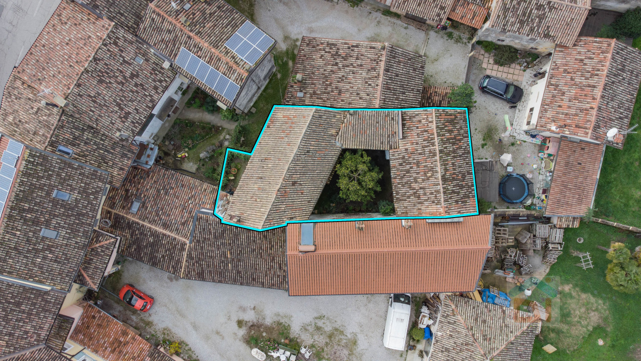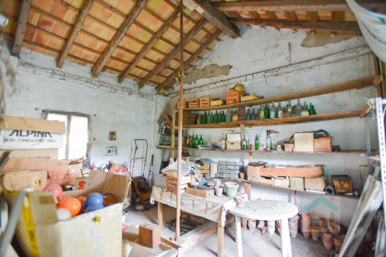 Attraverso lo storico portico si accede poi alla corte comune, attraverso la quale si arriva al garage ed all'ampio magazzino. Esso si sviluppa su due livelli creando una "C" che circonda la corte privata al suo interno, ed i suoi generosi spazi lo rendono perfetto per dare sfogo ai propri hobbies o, una volta ristrutturato, alla realizzazione di una struttura ricettiva.