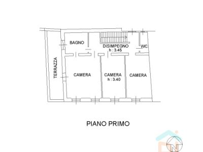 Al primo piano troviamo invece tre ampie camere da letto, un terrazzo, il bagno principale a servizio della camera padronale ed un w.c.