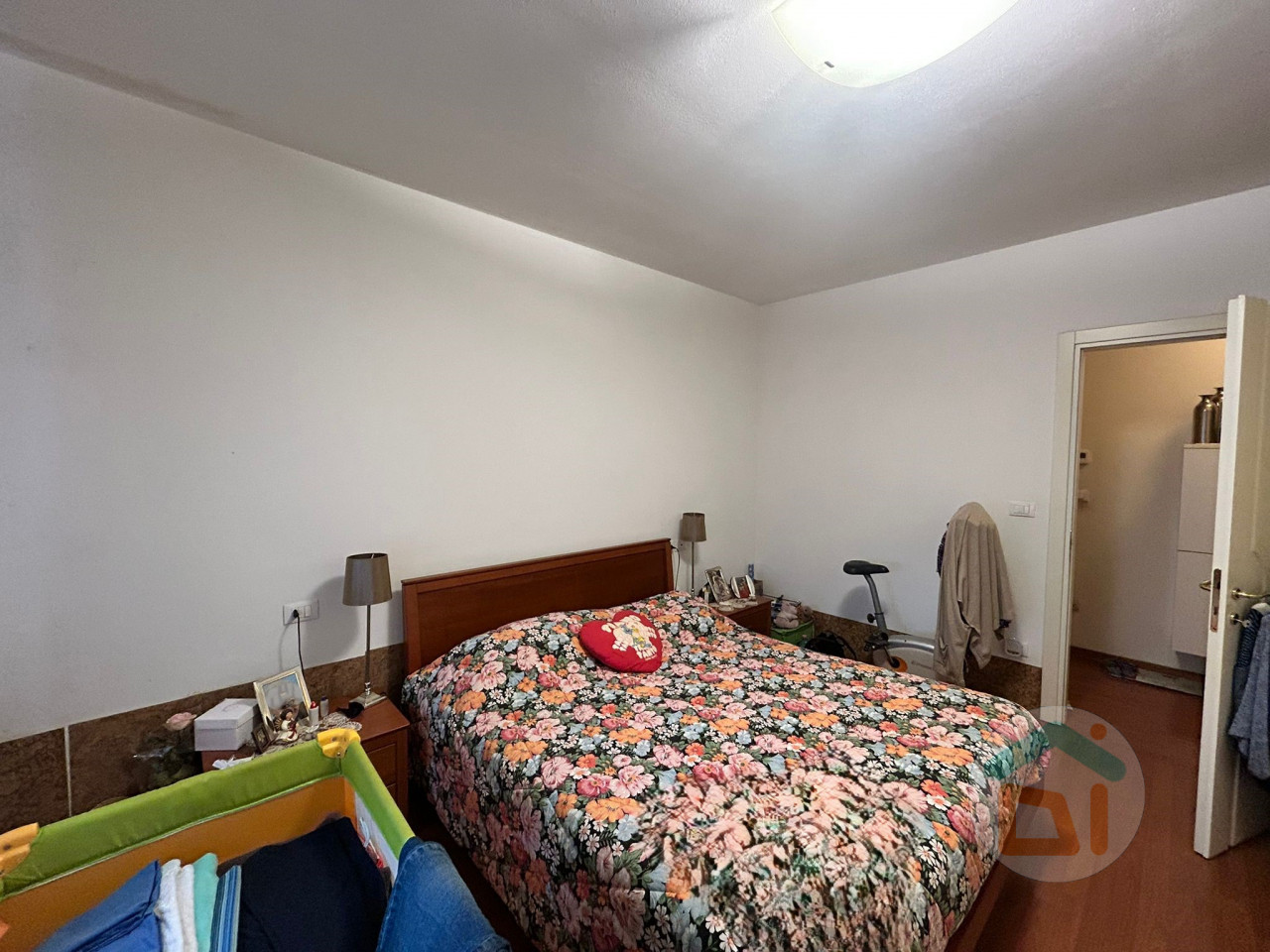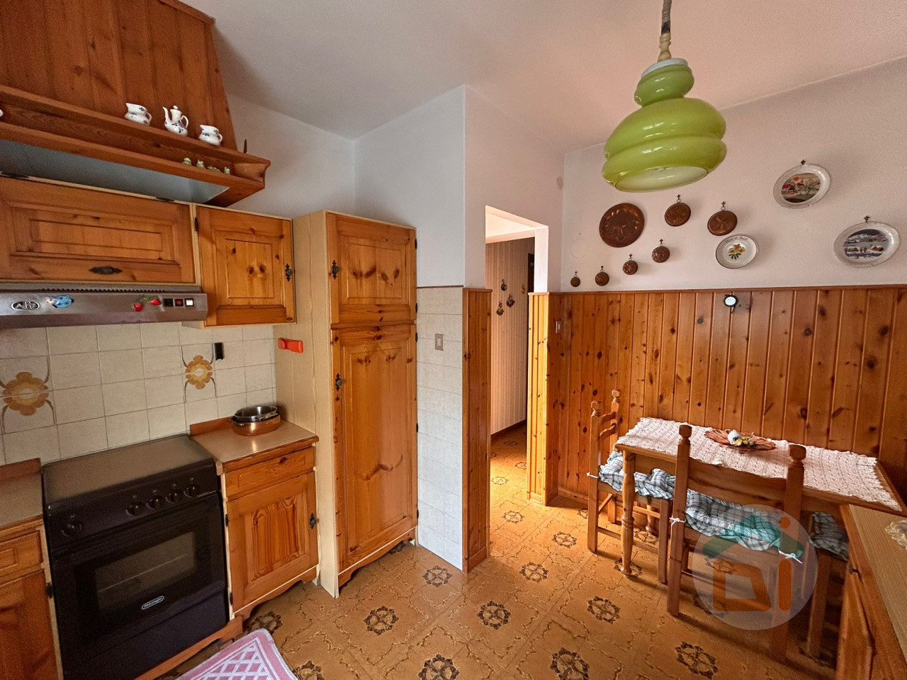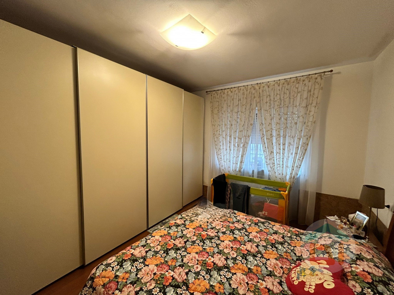 L' appartamento al piano terra é così disposto: ingresso in soggiorno con angolo cottura, disimpegno, camera singola, bagno dotato di doccia e camera matrimoniale. L'immobile é stato soggetto a una completa ristrutturazione tra il 2007 e il 2008, quindi di quell'epoca risalgono sia impianti che finiture. I serramenti sono in PVC doppi vetri, climatizzatore situato nella zona giorno, caldaia a condensazione locata in bagno. La pavimentazione si presenta in parquet nella zona giorno e nelle camere da letto, mentre il bagno é dotato di piastrelle.