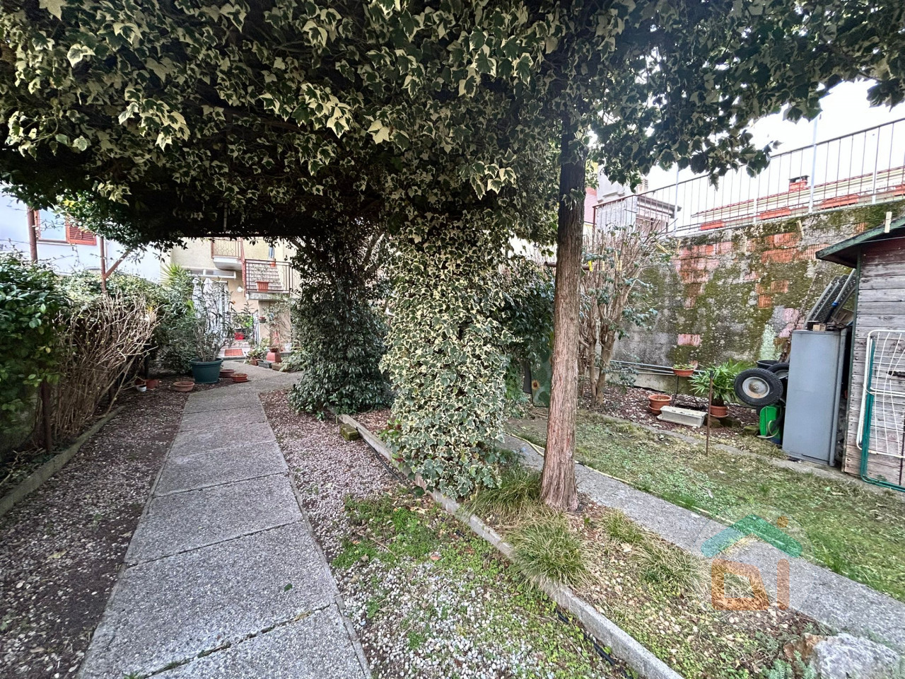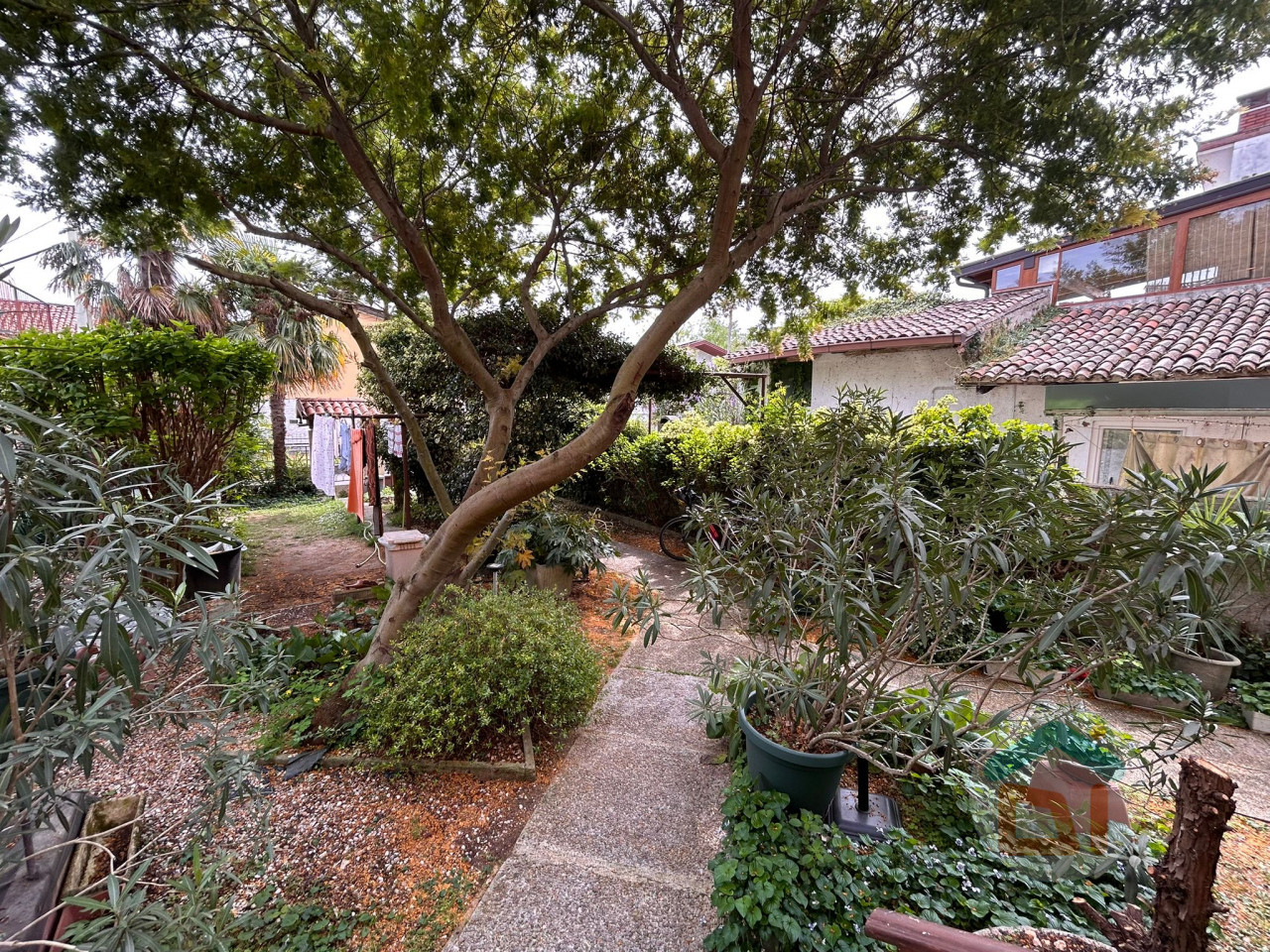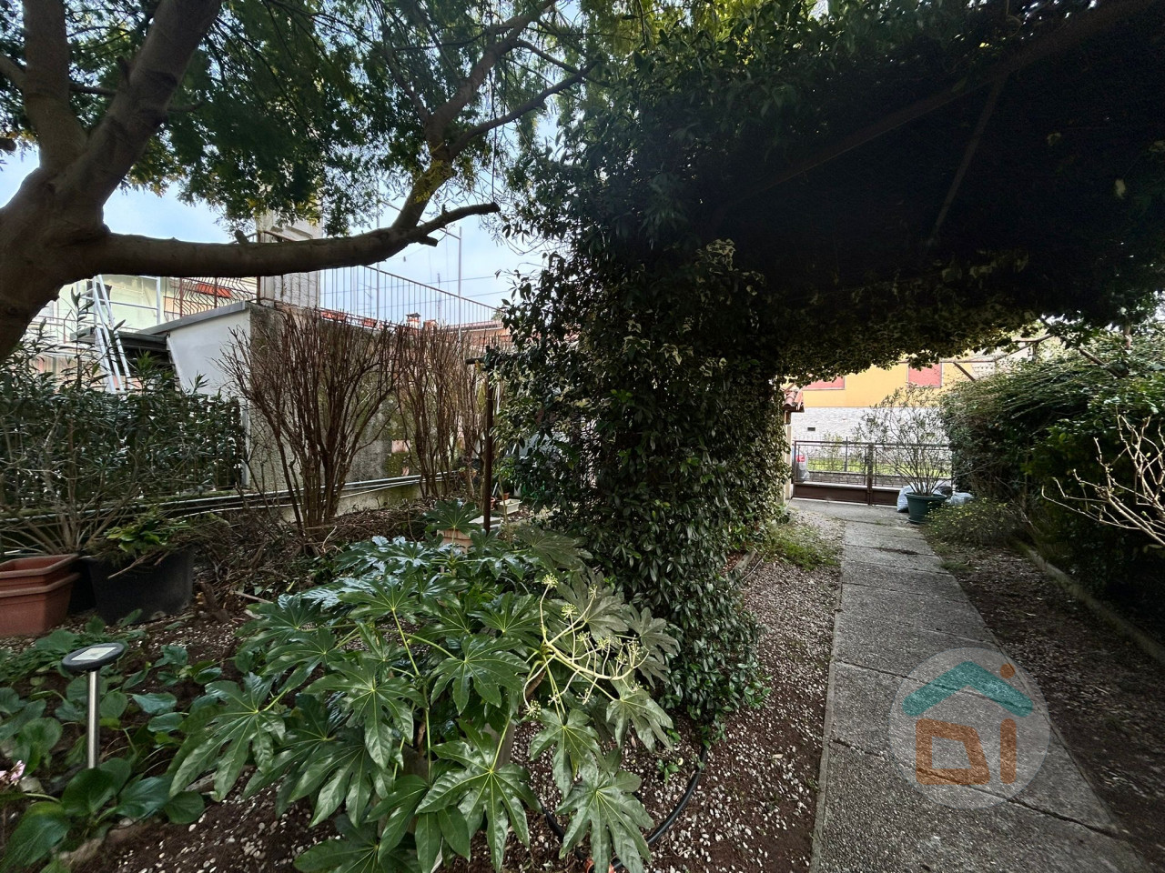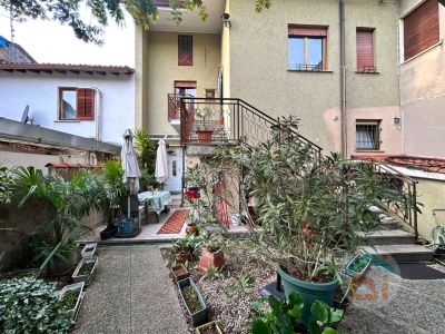Completa la proprietà: un giardino di circa 170 mq, una zona piastrellata posta fronte entrata dell'appartamento al piano terra, molto comoda come area sfogo, zona centrale termica del primo piano sita al piano terra.