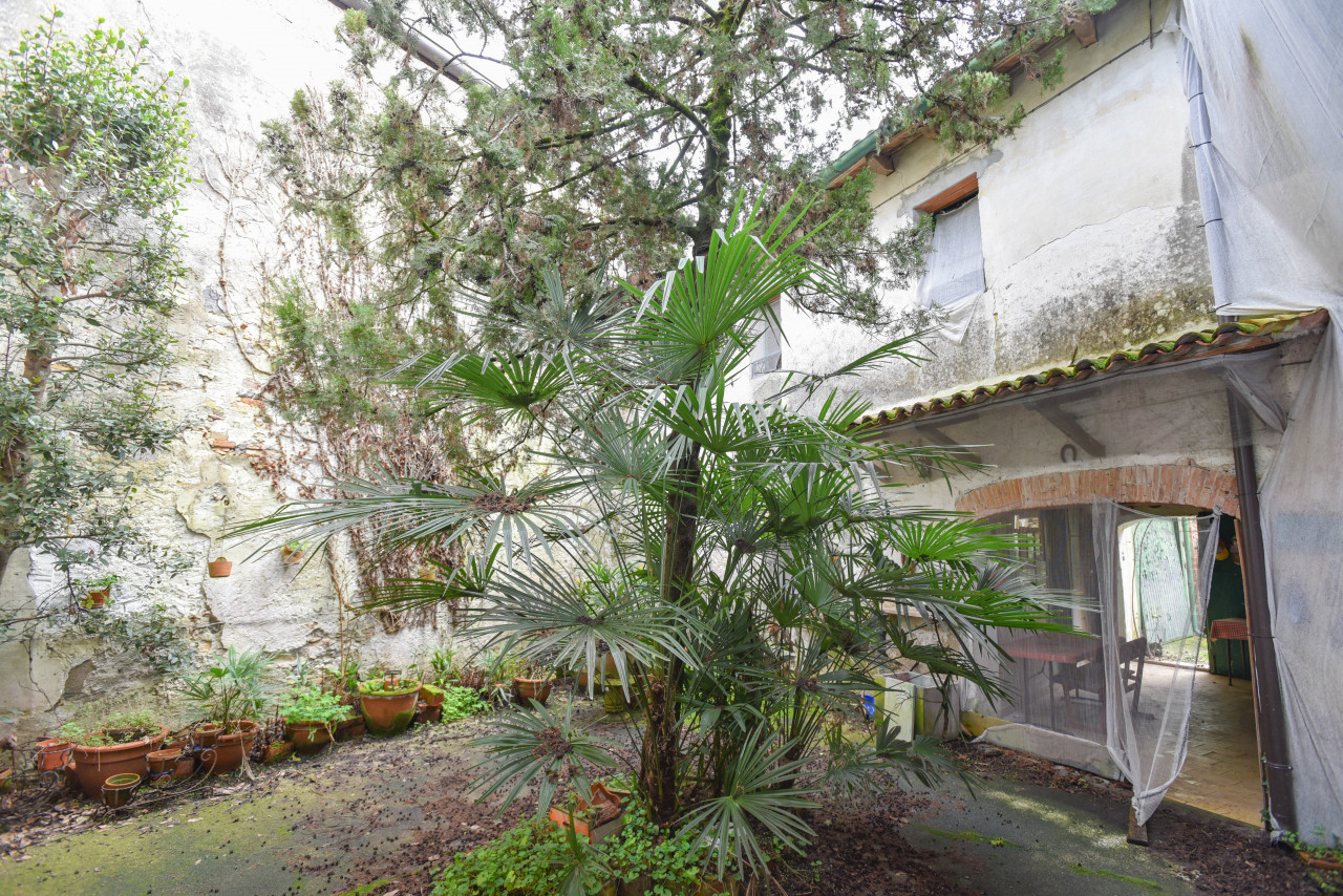 Attraverso lo storico portico si accede ad una corte comune, attraverso la quale si arriva al garage ed all'ampio magazzino e ad un appartamento completamente da ristrutturare. Esso si sviluppa su due livelli creando una "C" che circonda la corte privata al suo interno.