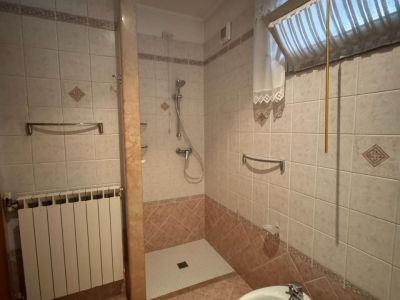 Gli infissi sono in legno con vetro singolo e dotati di scuretti sempre in legno. I pavimenti della zona giorno sono in piastrella rettangolare a posa diagonale mentre nella zona notte in listoni di legno nelle camere ed in piastrella quadrata a posa diagonale nel disimpegno e nel bagno. Il riscaldamento è autonomo, a gas, con termosifoni in tutte le stanze. E' presente l'impianto di climatizzazione.