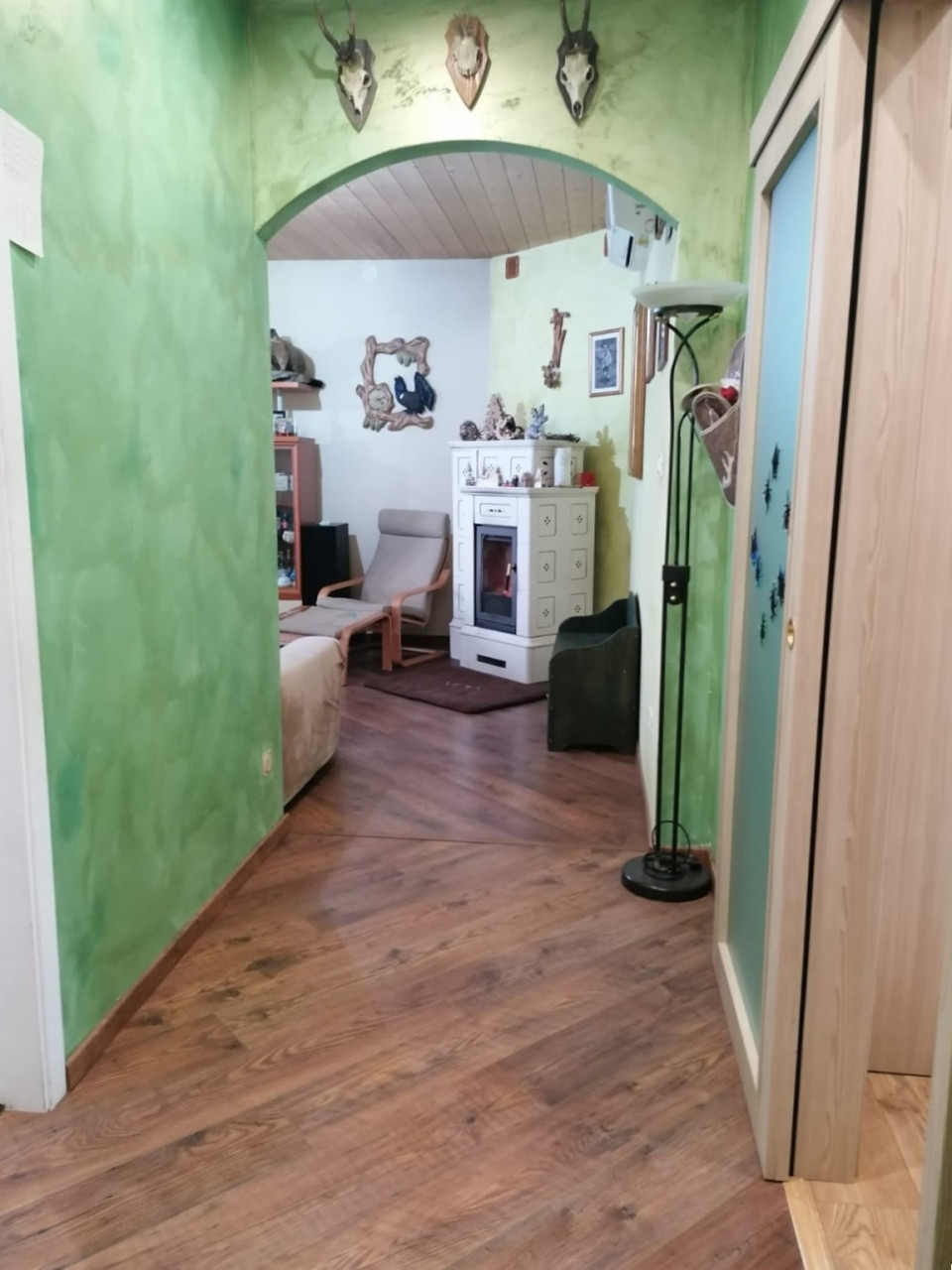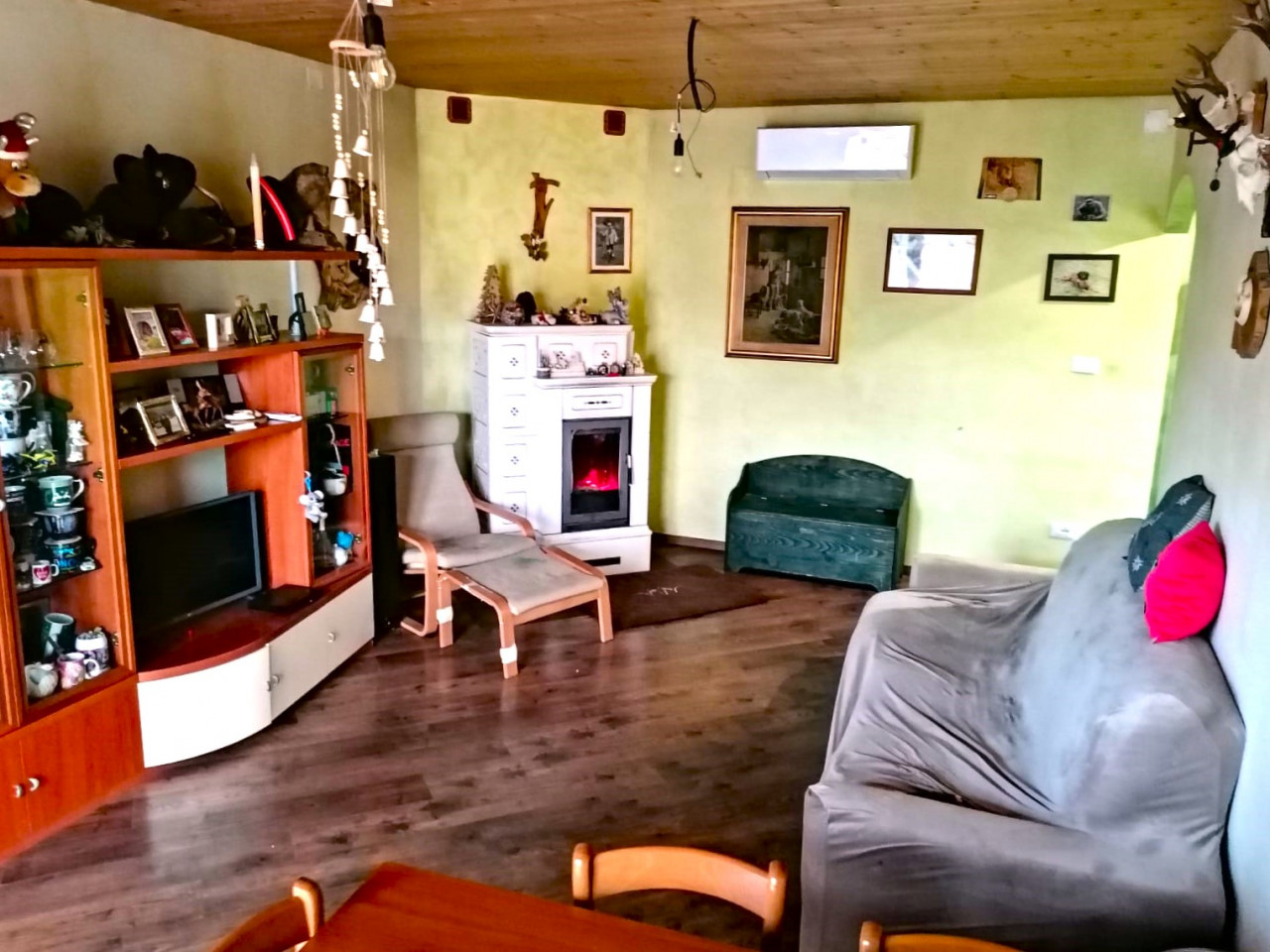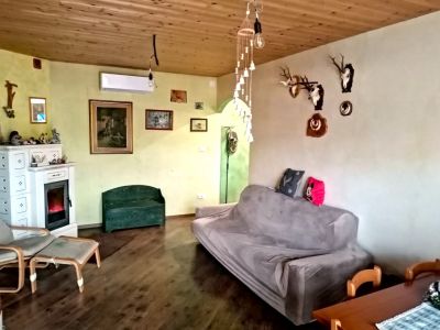 Gli infissi sono in doppio vetro pvc; la pavimentazione si presenta in prefinito in tutta l'abitazione e piastrelle nel bagno. La caldaia a condensazione è stata installata nel 2016; oltre ai due caminetti con aria canalizzata per riscaldare le stanze sono presenti due inverter con doppio split in zona giorno e in zona notte.