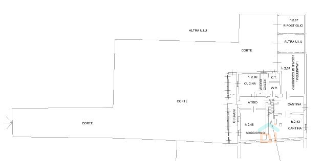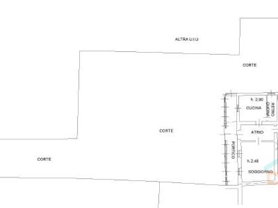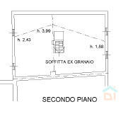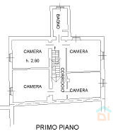 La casa è disposta su tre livelli ed è realizzata tutta in laterocemento. Al piano terra è presente: portico, atrio, cucina e retro cucina, soggiorno, disimpegno, bagno e due cantine e il locale lavanderia; al primo piano sono presenti 4 camere da letto e un bagno; al secondo piano la soffitta al grezzo.