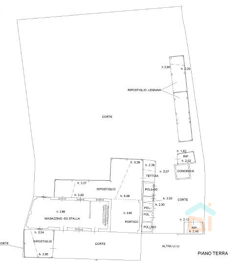 L'edificio adibito a stalla/fienile è disposto su due livelli. Al piano terra troviamo magazzino-ex stalla, portico, due rispostigli; al primo piano grande granaio. Esternamente sono presenti i vecchi pollai e la concimaia.