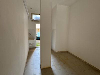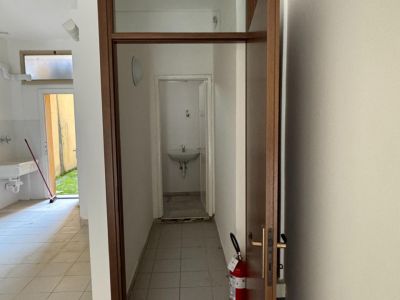 L'immobile è situato al piano terra di una palazzina disposta su tre livelli. E' composto da una singola stanza di circa 40mq ed un bagno finestrato con doccia. Nella stanza troviamo un lavatoio. E' presente una vetrata che affaccia sulla strada principale vicino alla porta d'ingresso. Per il personale c'è un ulteriore accesso dal retro in una corte privata.