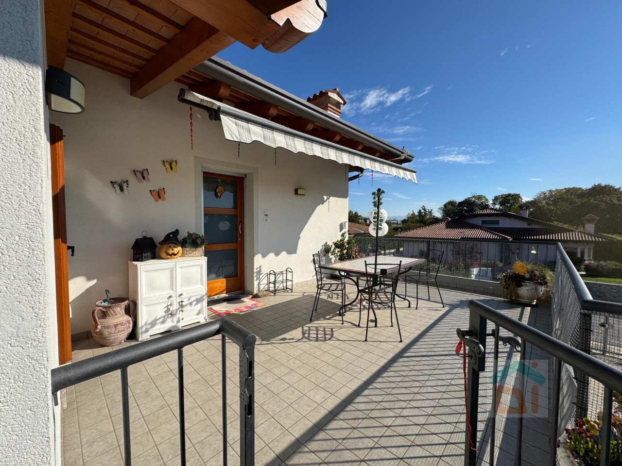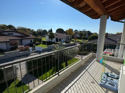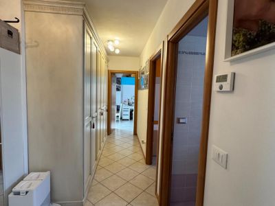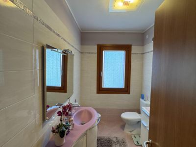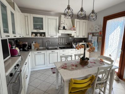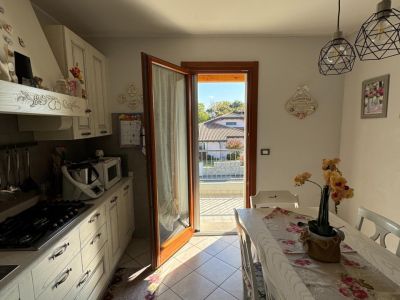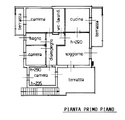 L'immobile è situato al primo piano, accessibile tramite scala esterna, di una casa quadrifamiliare. E' composto da ampio terrazzo, soggiorno, cucina abitabile con terrazzo, wc, disimpegno, tre camere da letto di cui una matrimoniale dotata di un ulteriore terrazzo ed un bagno finestrato con doccia. Esternamente completano la proprietà un giardino recintato, un posto auto scoperto ed un'autorimessa.