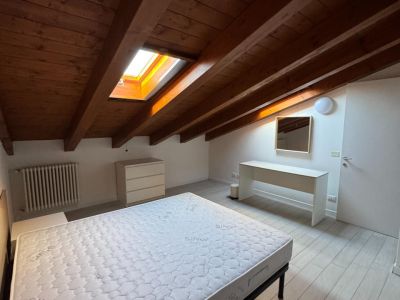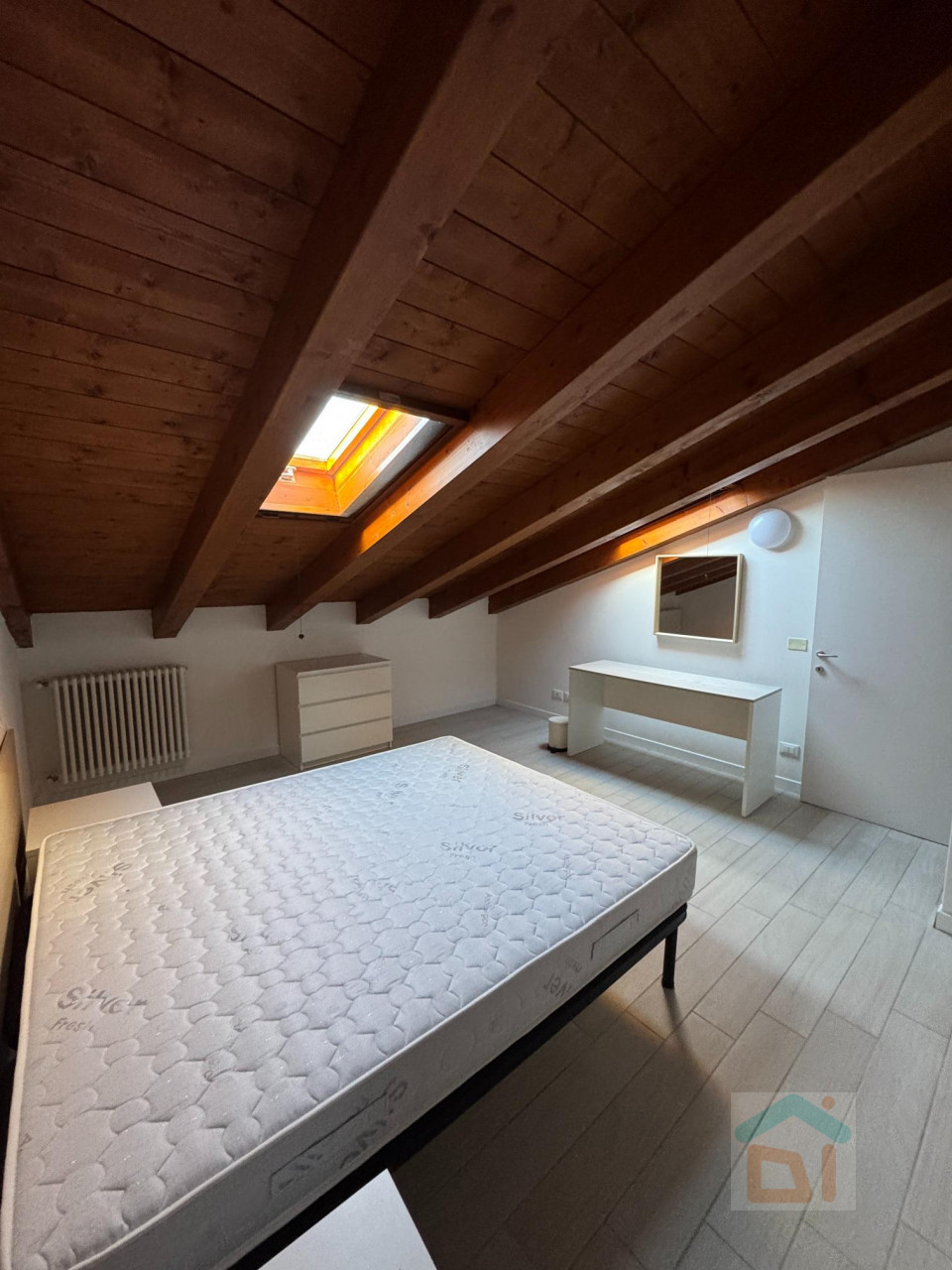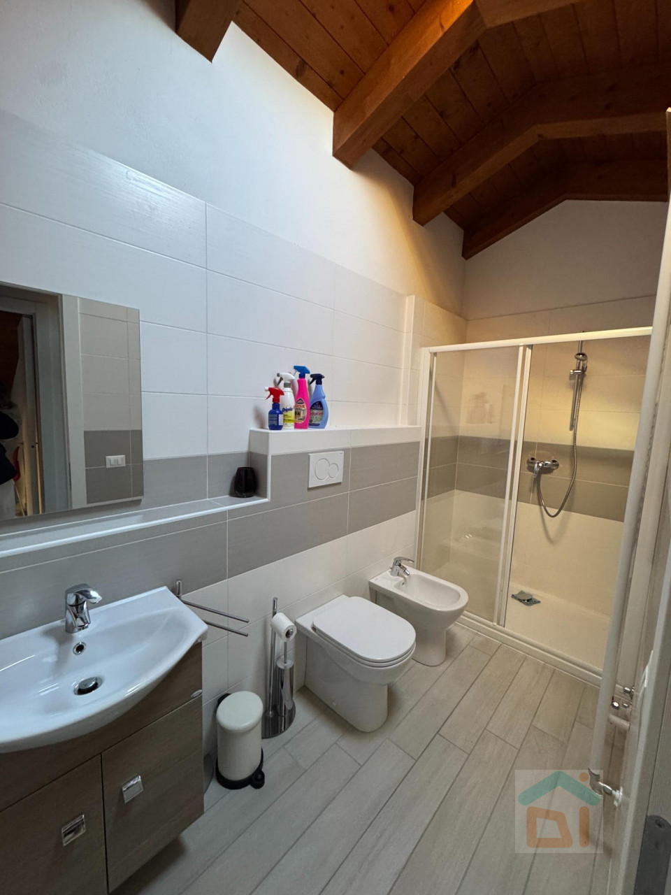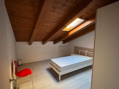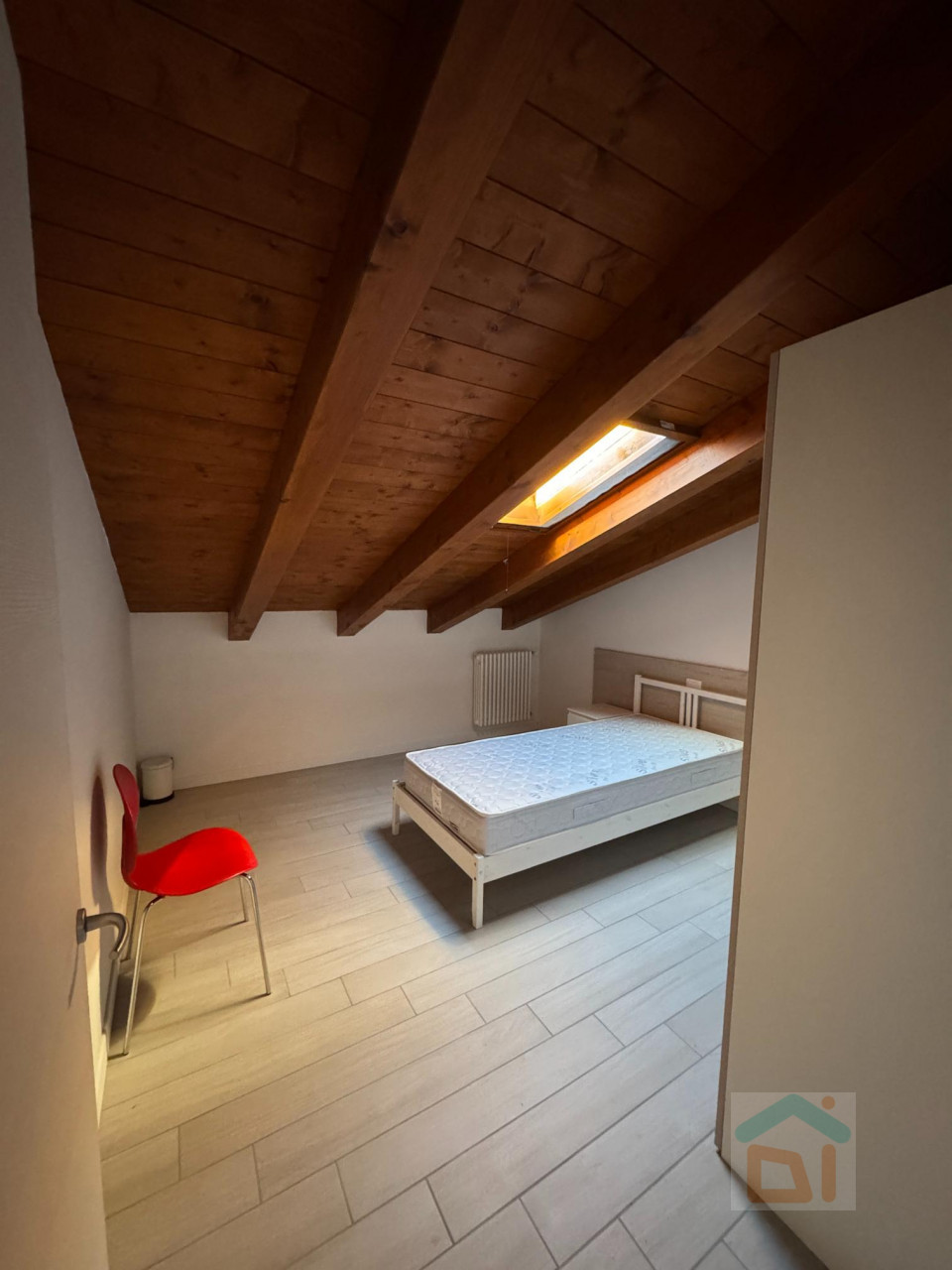 L'immobile si sviluppa su due livelli: al piano terra è composto da soggiorno con cucina a vista, disimpegno che conduce alla luminosa camera matrimoniale e al bagno con doccia finestrato. Al primo piano, collegato mediante scala interna, troviamo due ulteriori camere da letto matrimoniali ed un bagno con doccia, tutto caratterizzato da eleganti travi in legno a vista. Esternamente completa la proprietà una cantina situata nella corte comune.