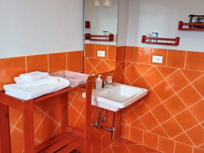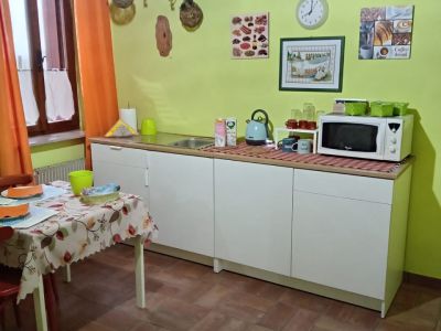 E' inoltre presente una stanza al piano terra di uso comune ad uso cucina, arredata con lavandino, mobile privato con stoviglie e dispensa, piano cottura con forno a induzione e frigorifero (in comune).