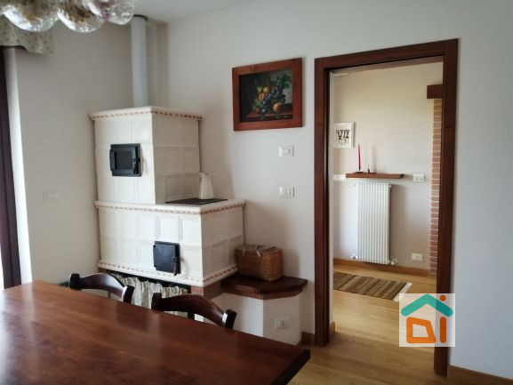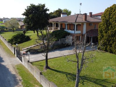 Al primo piano troviamo ampio portico di circa 60 mq, ingresso con stube, cucina con piccola stube, soggiorno con caminetto, disimpegno, tre camere e bagno con doccia. Al piano terra troviamo ampia taverna con cucina in muratura e fogolar, disimpegno con stube, due stanze ad uso ripostiglio, cantina, dispensa, bagno con vasca, lavanderia e centrale termica, portico esterno. Esternamente sono presenti dei locali accessori ad uso deposito, con tettoia e posto auto esterno. Il giardino è molto curato, piantumato. Cancello carraio automatizzato.