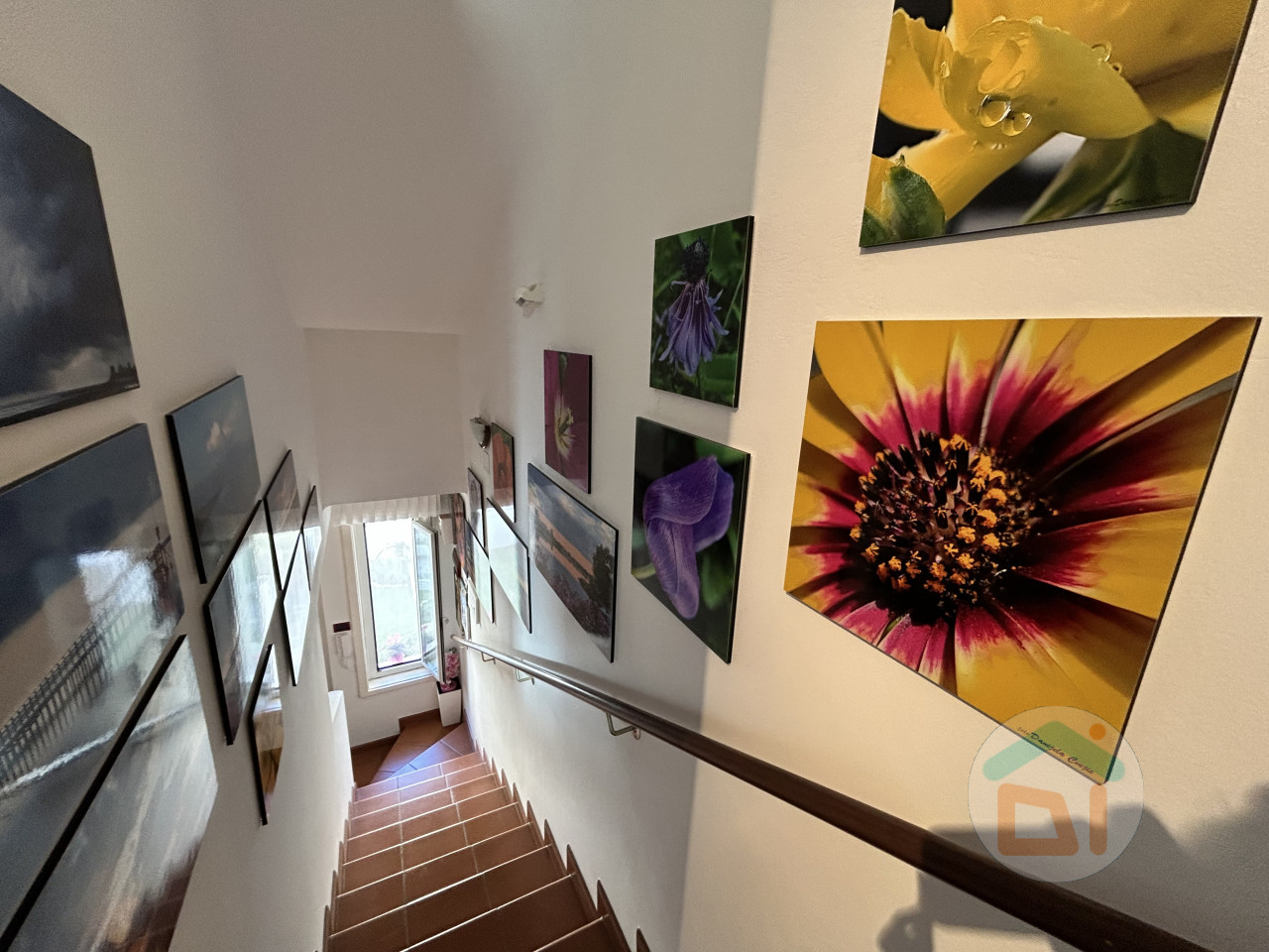 L'immobile è composto al piano terra da ingresso, soggiorno collegato mediante un arco alla cucina. Vi è poi un accesso al piano seminterrato in cui é situata una cantina. Presente inoltre, una veranda dotata di accesso secondario alla casa, utilizzata come zona lavanderia. Al piano primo invece, vi sono 2 camere da letto, la camera matrimoniale é dotata di terrazzo privato e ripostiglio, completa il piano un disimpegno e bagno con vasca.