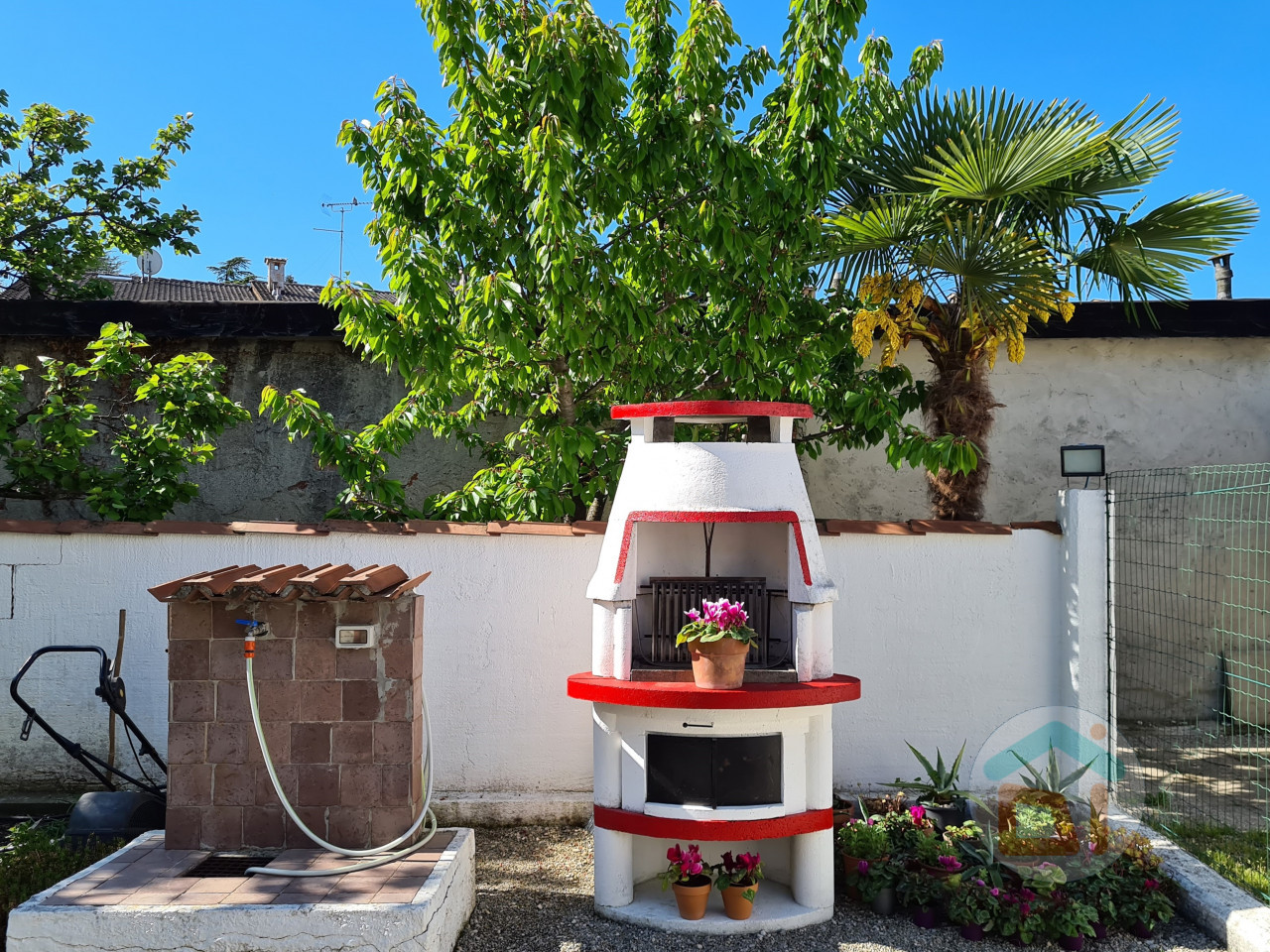 Inoltre il giardino è dotato di una tettoia con struttura in metallo e copertura in telo, acqua, barbecue e un orto sempre stato ben curato.