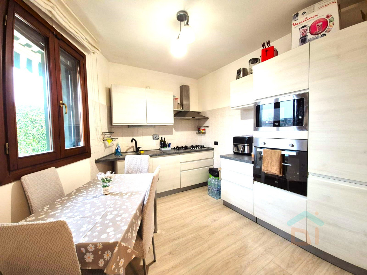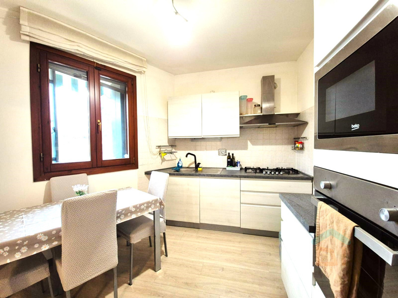 Gli infissi sono in legno con doppio vetro e scuri, la pavimentazione è in piastrelle e in listoni in laminato.